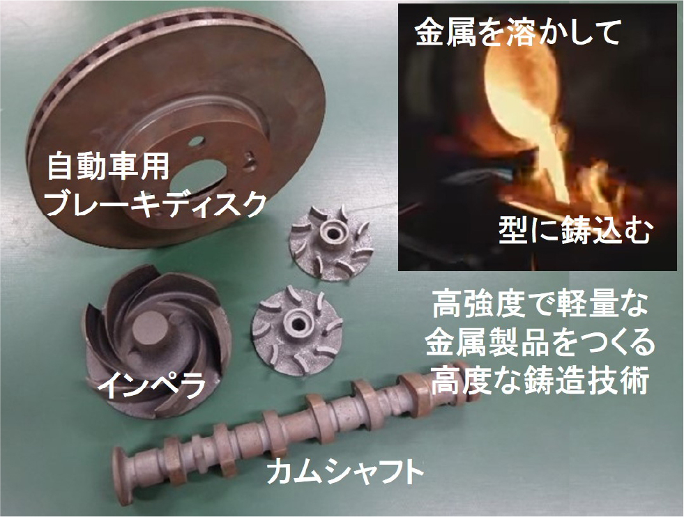 この世界の形あるものは全て何らかの“材料”からできています。材料科学コースでは、ものづくりの原点である“材料”について、南部鉄器から続く伝統ある鋳鉄やアルミの鋳造技術から最新のチタンなどの生体材料、ナノ磁性材料やスピントロニクスを駆使した電子材料まで、サステナブルな社会の実現に必要とされる新しい“材料”とその関連技術を専門とする教員が教育と研究を担当しており、その成果は高く評価されています。