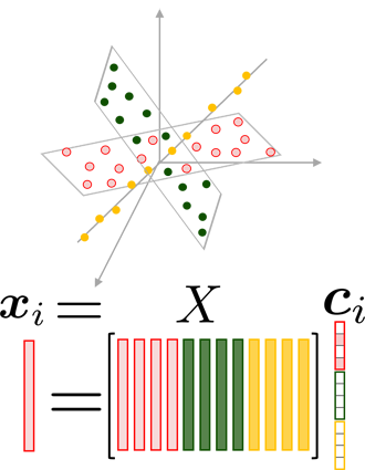 深層学習の発展に伴い情報の蓄積能力が著しく向上したことで,データセットの大規模化および複雑化が進んでいる.このようなビッグデータの性質や構造に応じて数理モデルを設計し,関心のあるパターンや構造を解明するという教師なし機械学習の社会的重要性はますます高まっている.そこで,わたしたちは高次元データが持つ情報を少数要素で特徴づけることでビッグデータを低次元のベクトル空間で表現する研究を行っています.